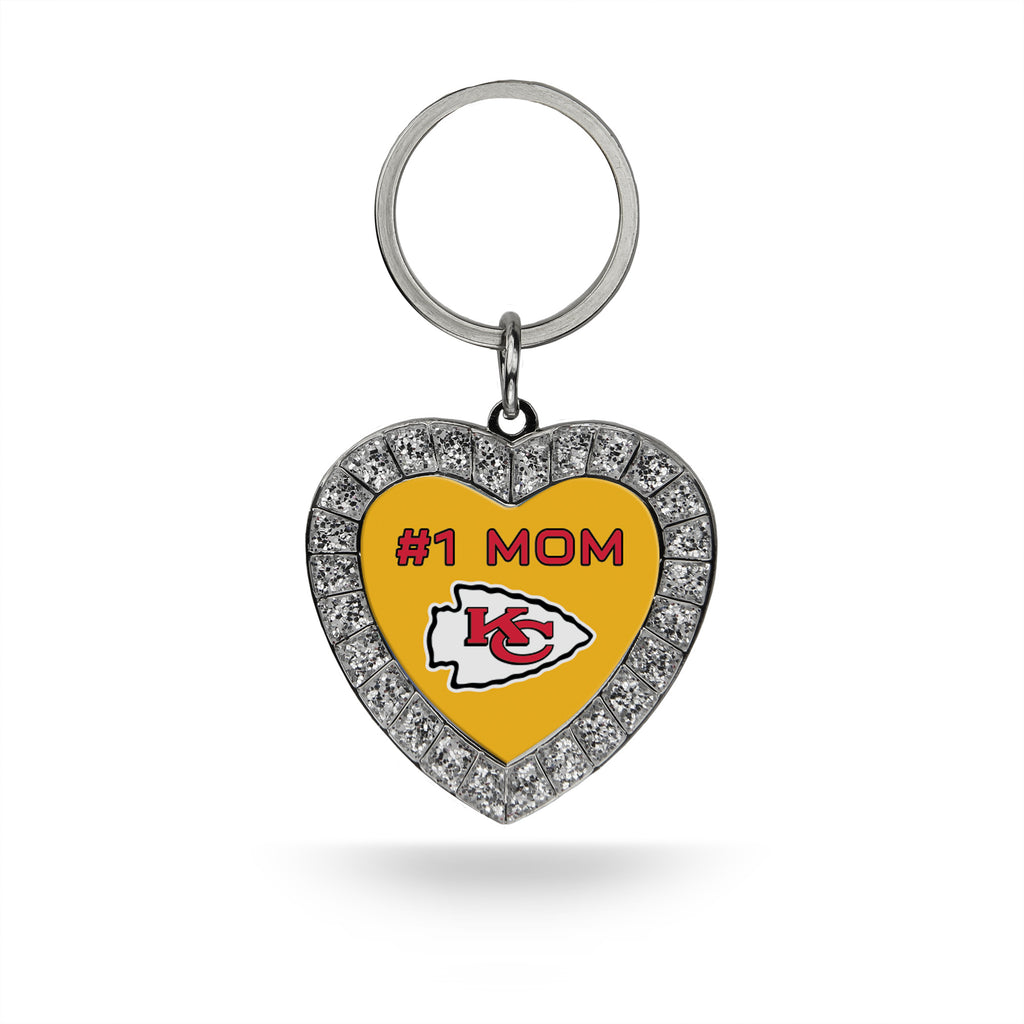 # 1 Mom Chiefs Rhinestone Heart Keychain