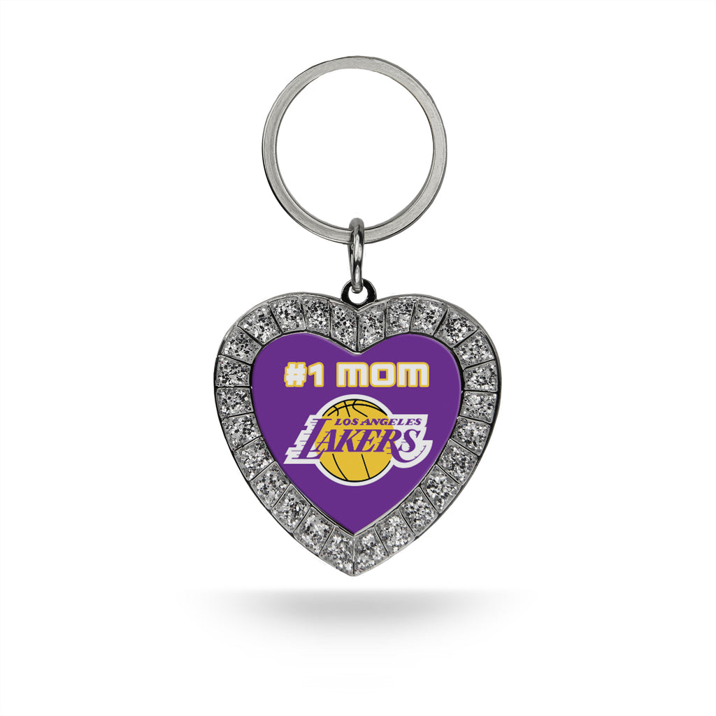 #1 Mom Lakers Rhinestone Heart Keychain