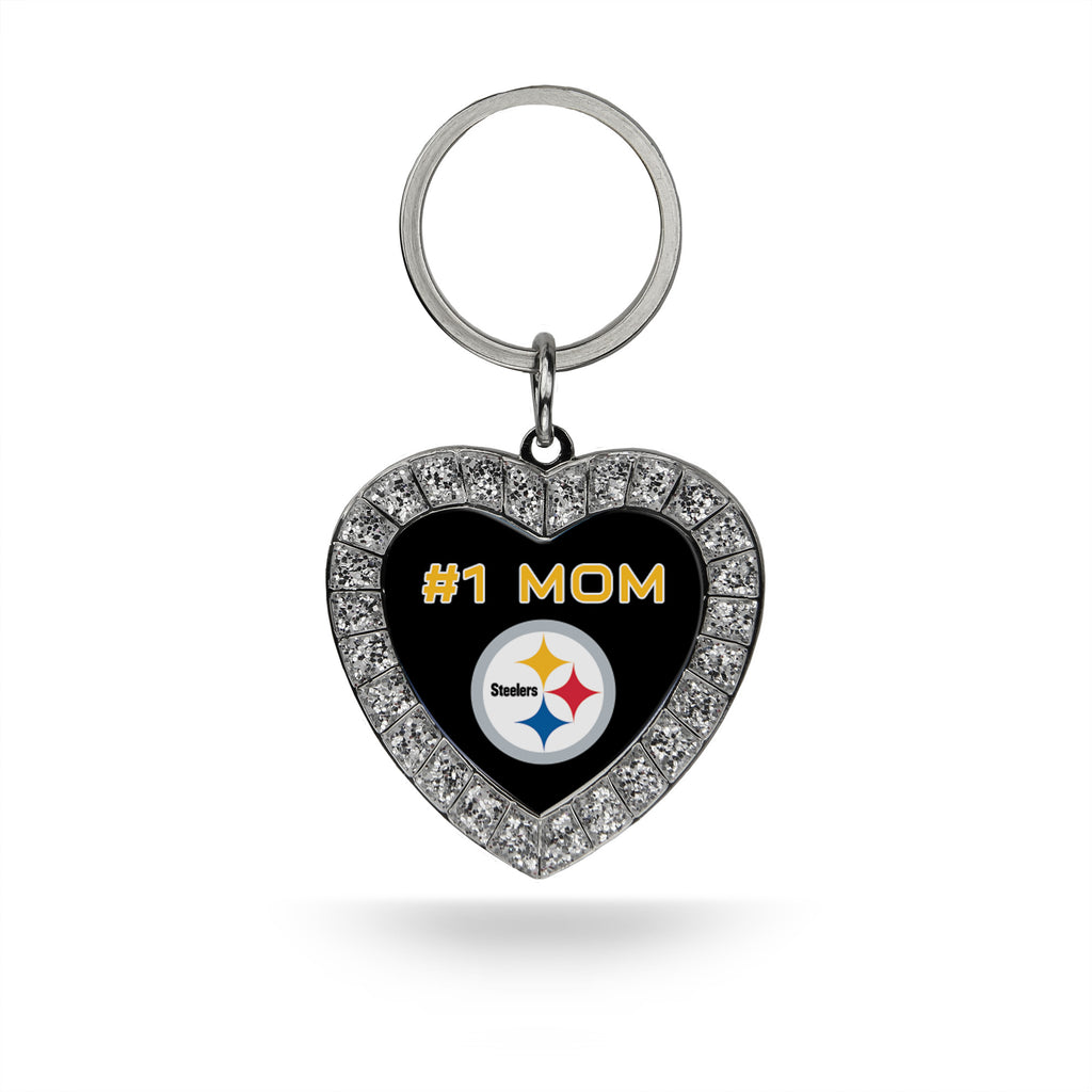 # 1 Mom Steelers Rhinestone Heart Keychain